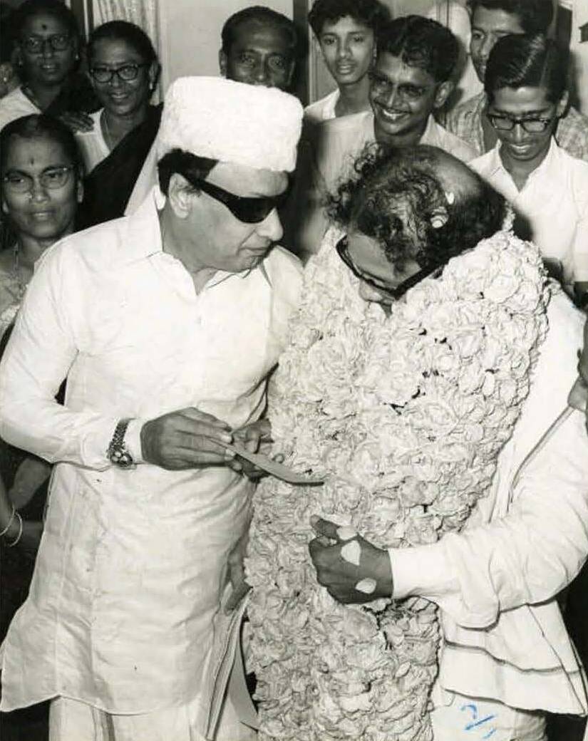 - மெட்ராஸில் ஆம்புலன்ஸ் சேவையைத் தொடங்கி வைக்கிறார் கலைஞர், அருகில் எம்.ஜி.ஆர். (அக்டோபர் 16, 1971)